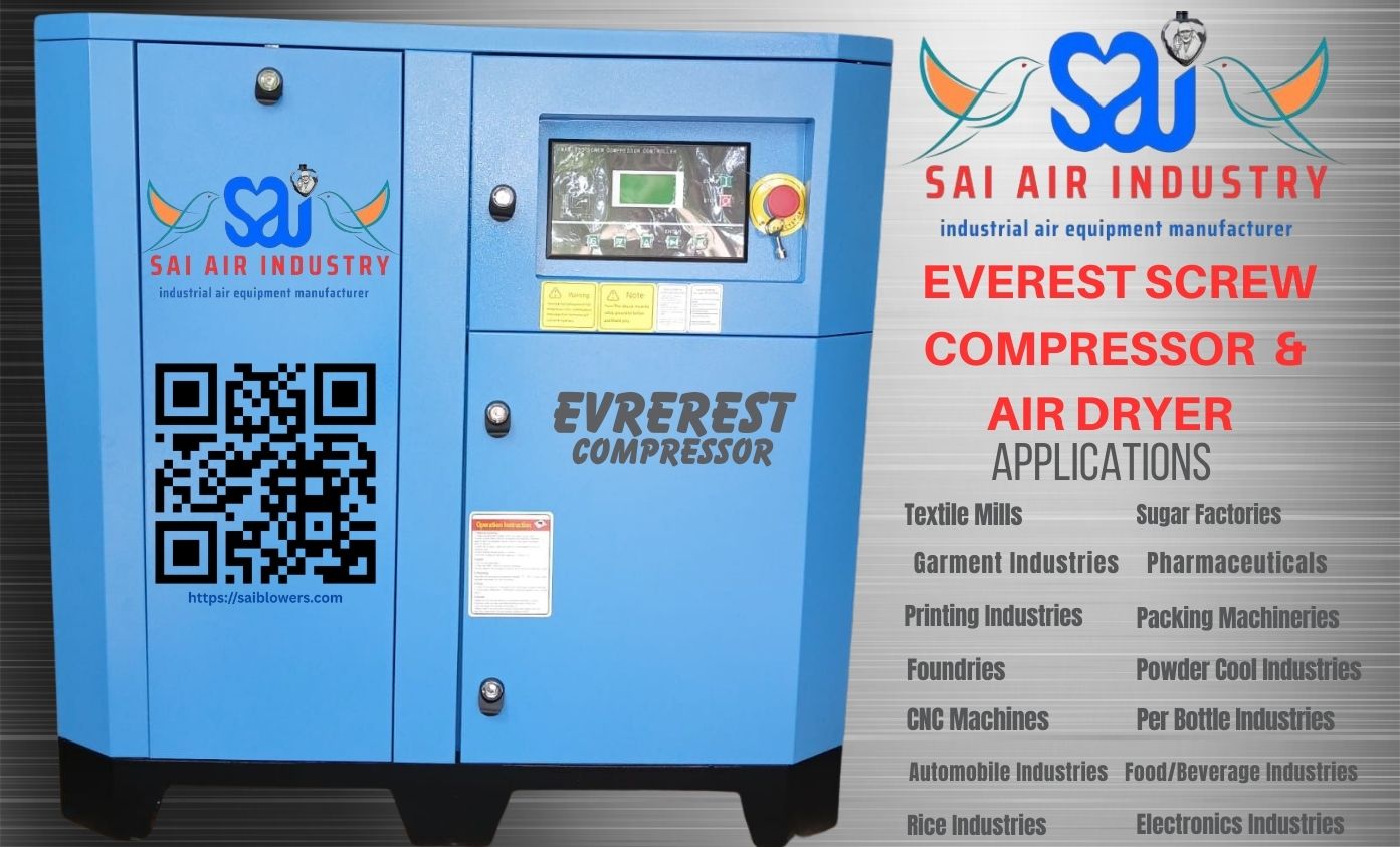 SAI AIR INDUSTRY is a trusted supplier and service provider of Everest Screw Air Compressors for various industrial applications. We provide high-performance, energy-efficient screw compressors designed for continuous industrial operation with stable air pressure and low maintenance requirements.